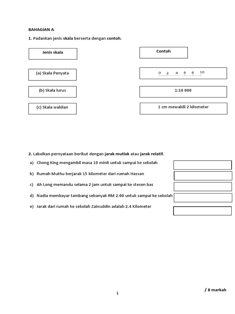 Geografi Tingkatan 2 Bab 1 Skala Dan Jarak 1 Worksheet