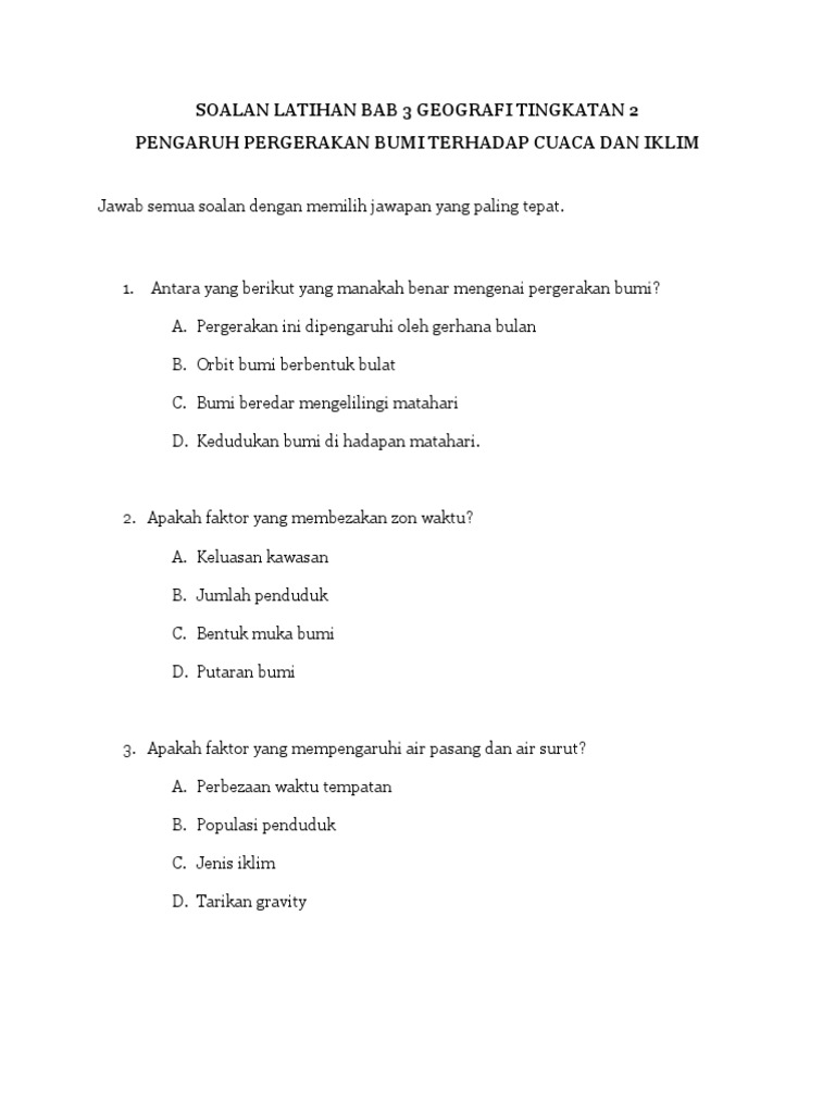 Soalan Latihan Bab 3 Geografi Tingkatan 2 Pdf