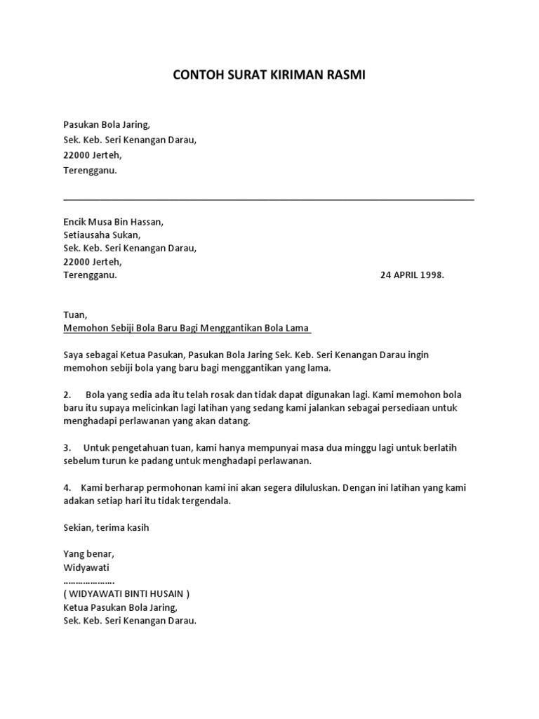 Contoh Surat Rasmi And Tidak Rasmi